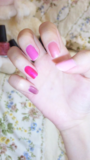 全身都很粉嫩的時候, 不妨選擇用帶點紫色的指甲油