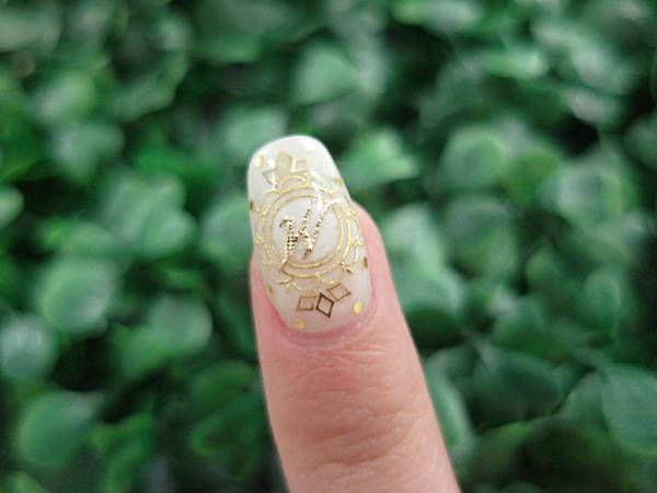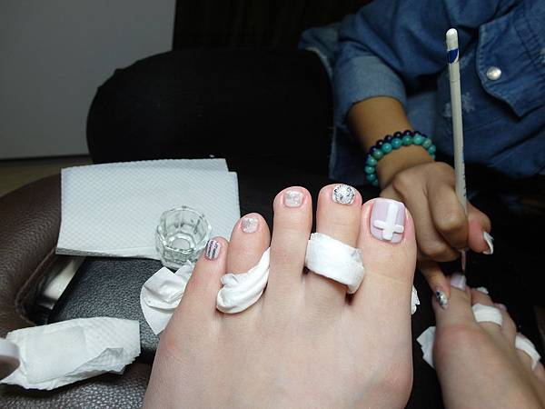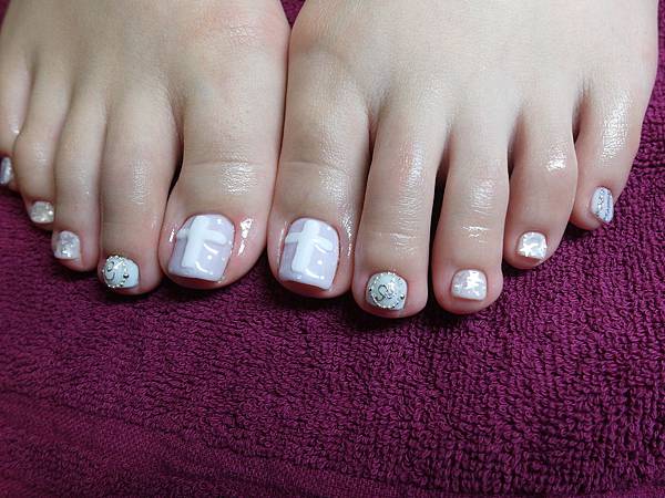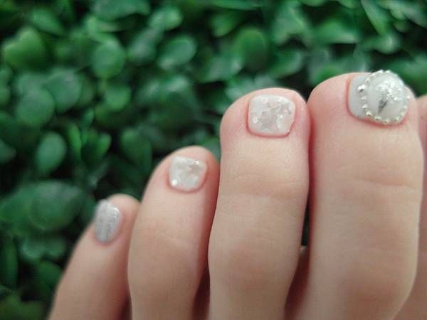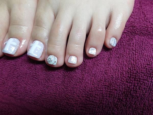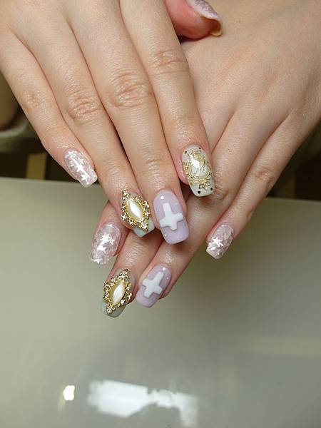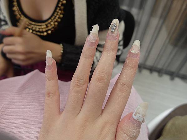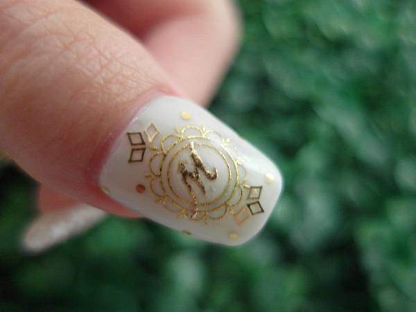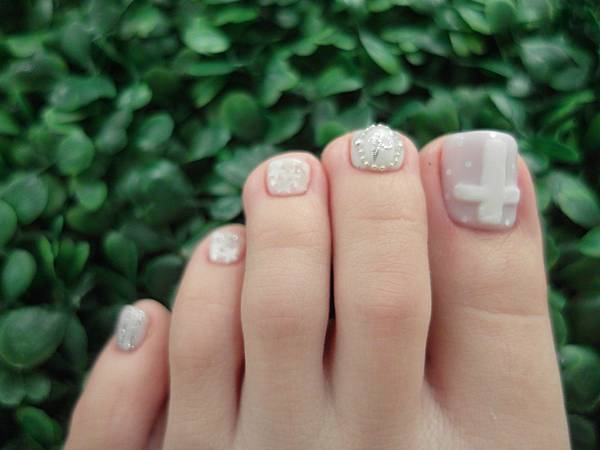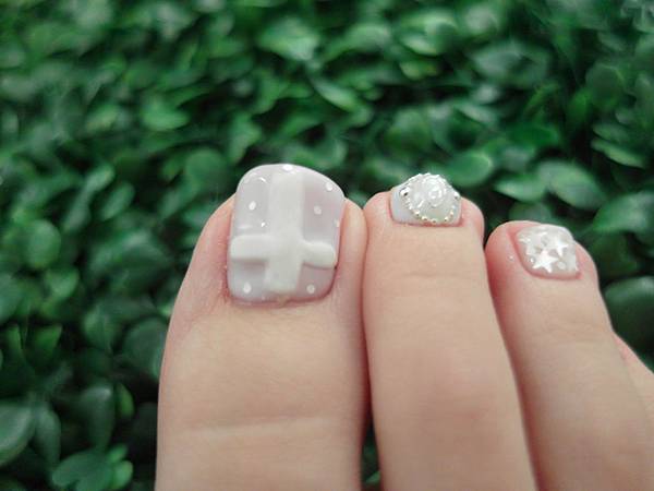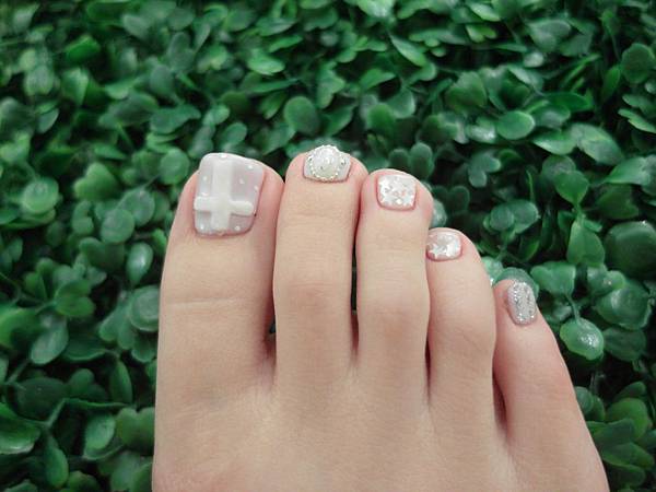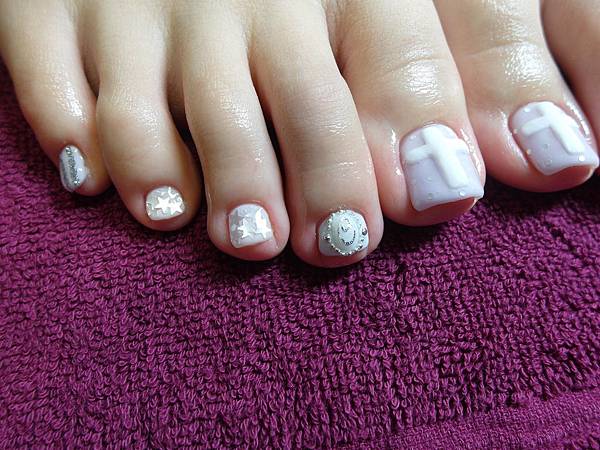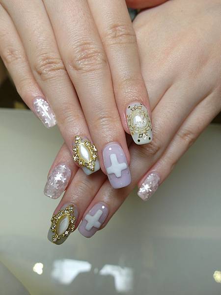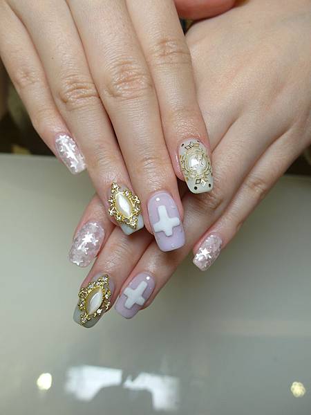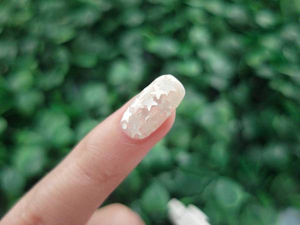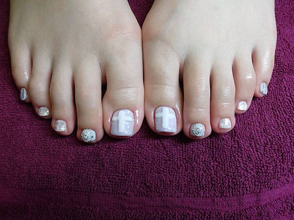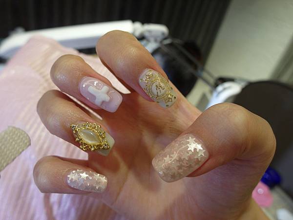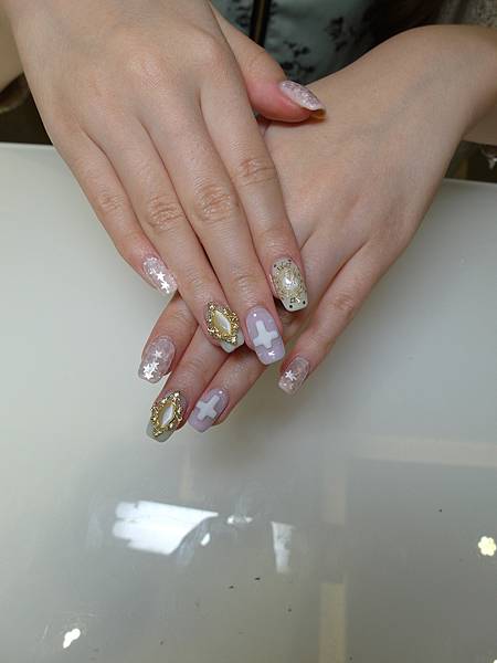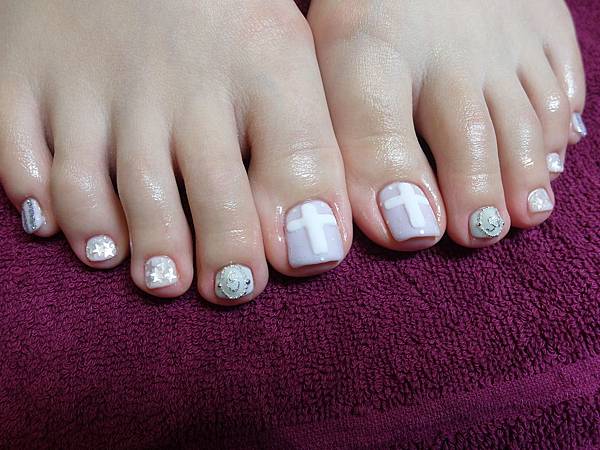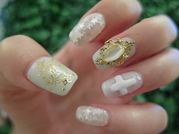 手指的十字架粉雕, 底部當然也用了乳白色圓形亮片裝飾!