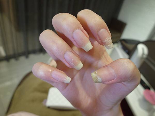 軟化原本的光療後, 就可以開始剪短跟卸除