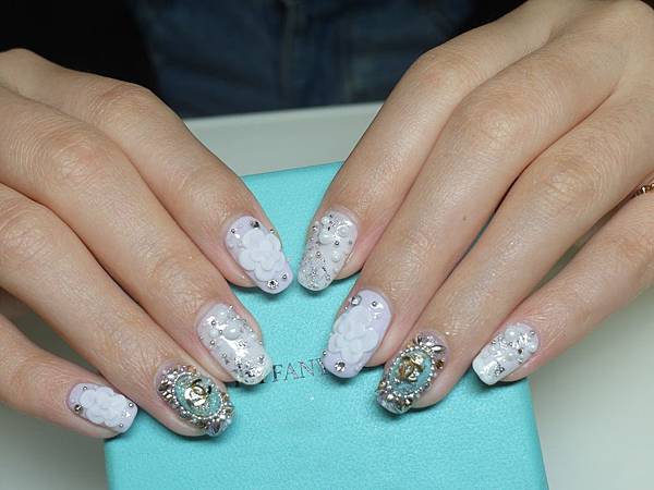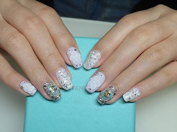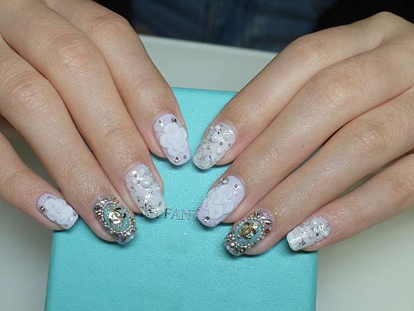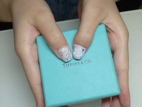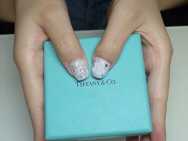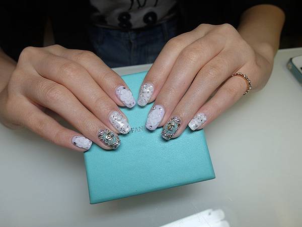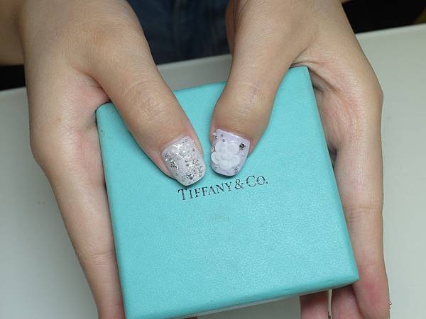 所以有幾指選擇以乳白色打底, 再鋪上銀箔~加上珍珠跟銀色小珍珠