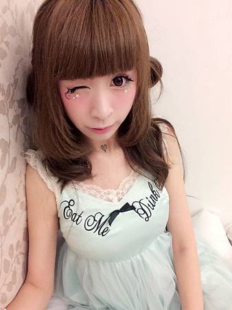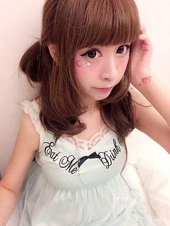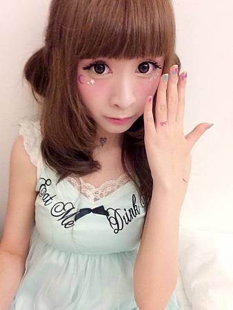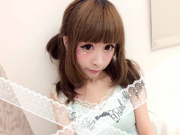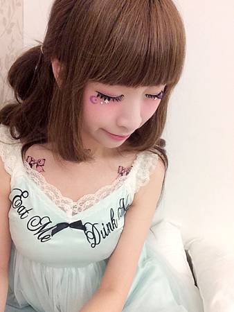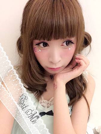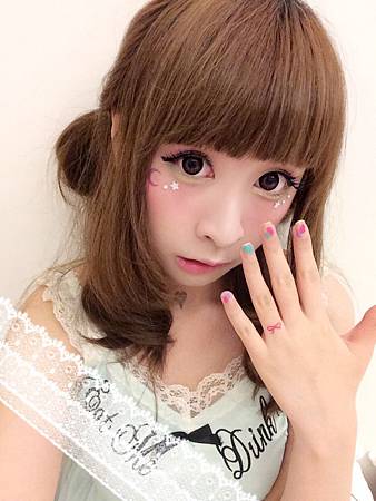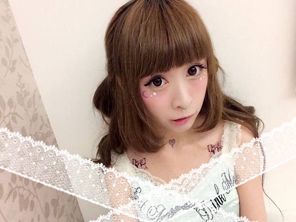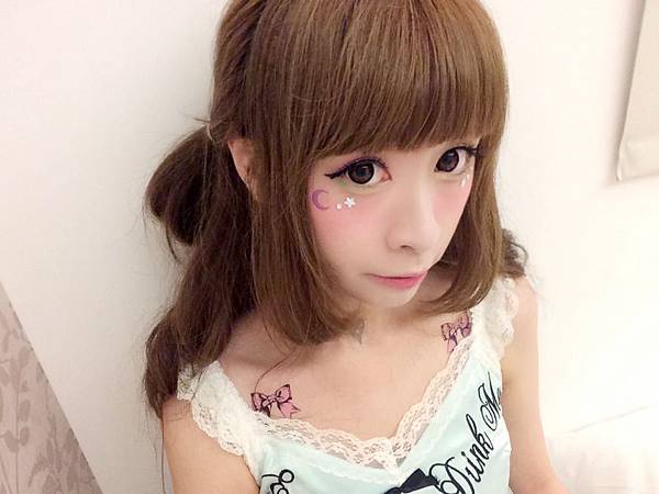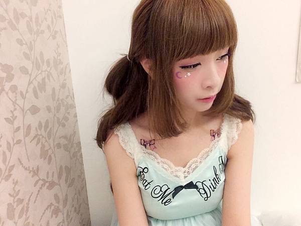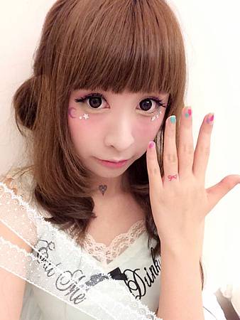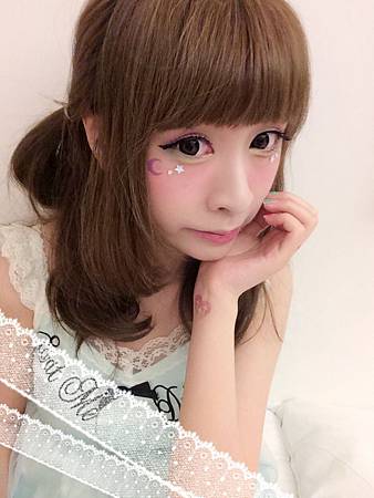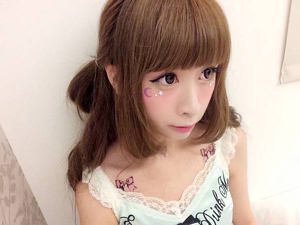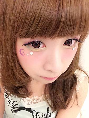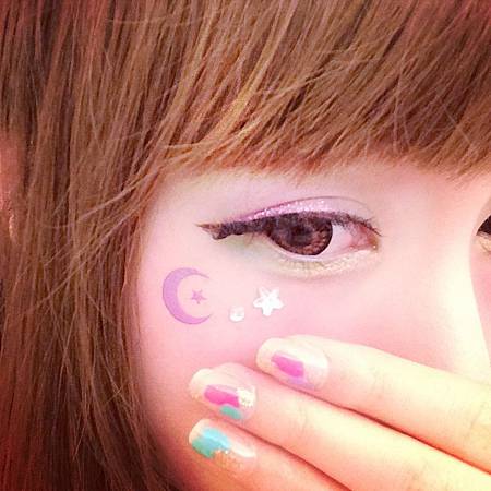 眼睛下方貼了紫色月亮~和白色的小鑽們