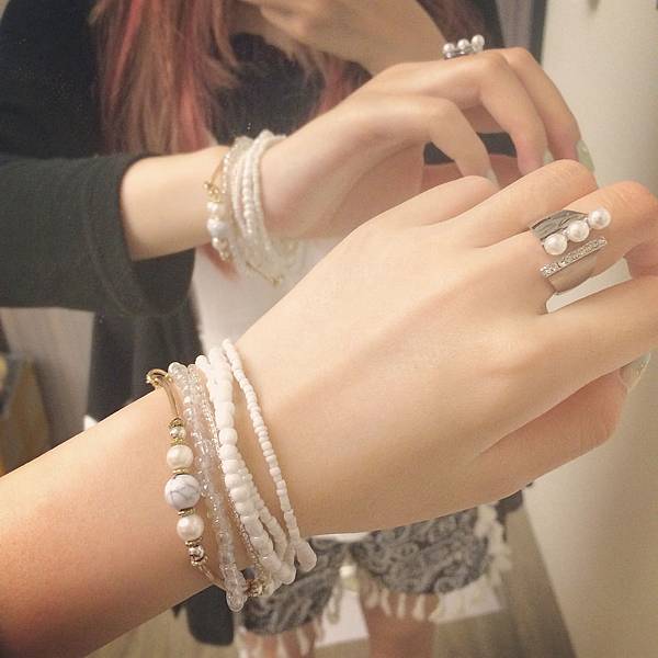 異材質的組合搭配真的很漂亮,配上珍珠水鑽的戒指